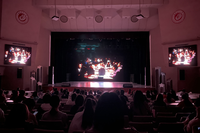 4月9日晚,我校在金山校区大礼堂启动本学期首场“电影周”活动,近320名学生观看了党史学习教育电影《建党伟业》。