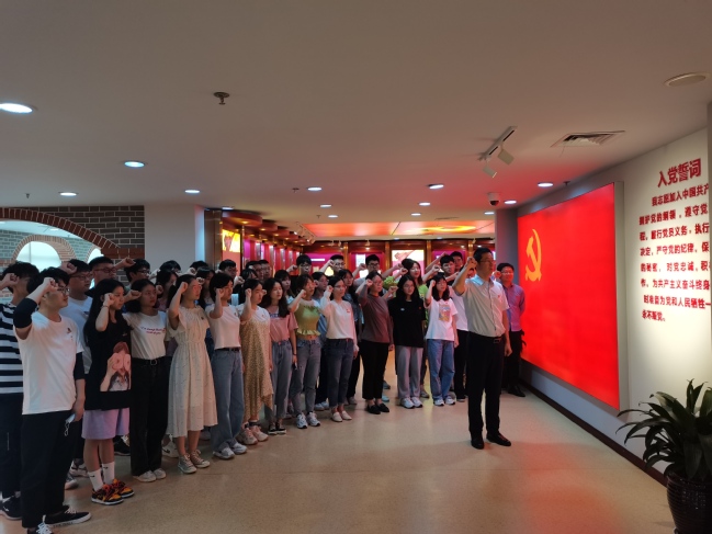 参观后,全体党员在学院党委副书记苏开敏的领誓下,面向鲜红的党旗,再次坚定地许下了对党忠诚和为共产主义事业奋斗终身的庄重承诺。
