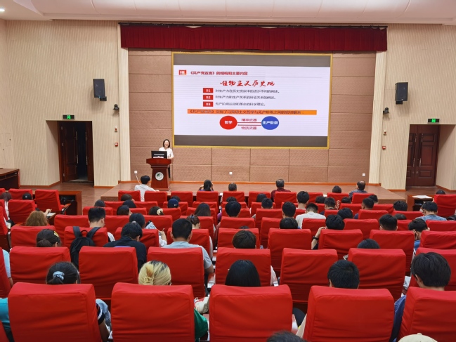 林贤明以《百年情缘:中国共产党与〈共产党宣言〉》为主题,从“一本值得好好读的书”“一见如故百年征程”“依靠学习走向未来”三个方面,为现场师生讲解了:《共产党宣言》的写作背景,结构和主要内容,重要意义;中国共产党成立以来的百年征程中,中国共产党以《共产党宣言》的基本思想为指导,满怀远大理想,不忘初心,不断前行的伟大历程;历代伟大领袖学习《共产党宣言》的故事。使师生对我们党与《共产党宣言》始于初心,合于特质,久于使命的历史情缘有了更深刻的理解。