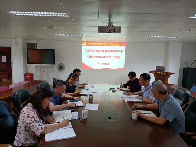 6月8日下午,艺术学院园林学院党委书记陈为德主持召开学院党委理论学习中心组会议,开展党史学习教育读书班第四专题学习研讨。学院领导干部围绕“党员领导干部必须讲政治、守规矩”这一主题进行研讨交流。