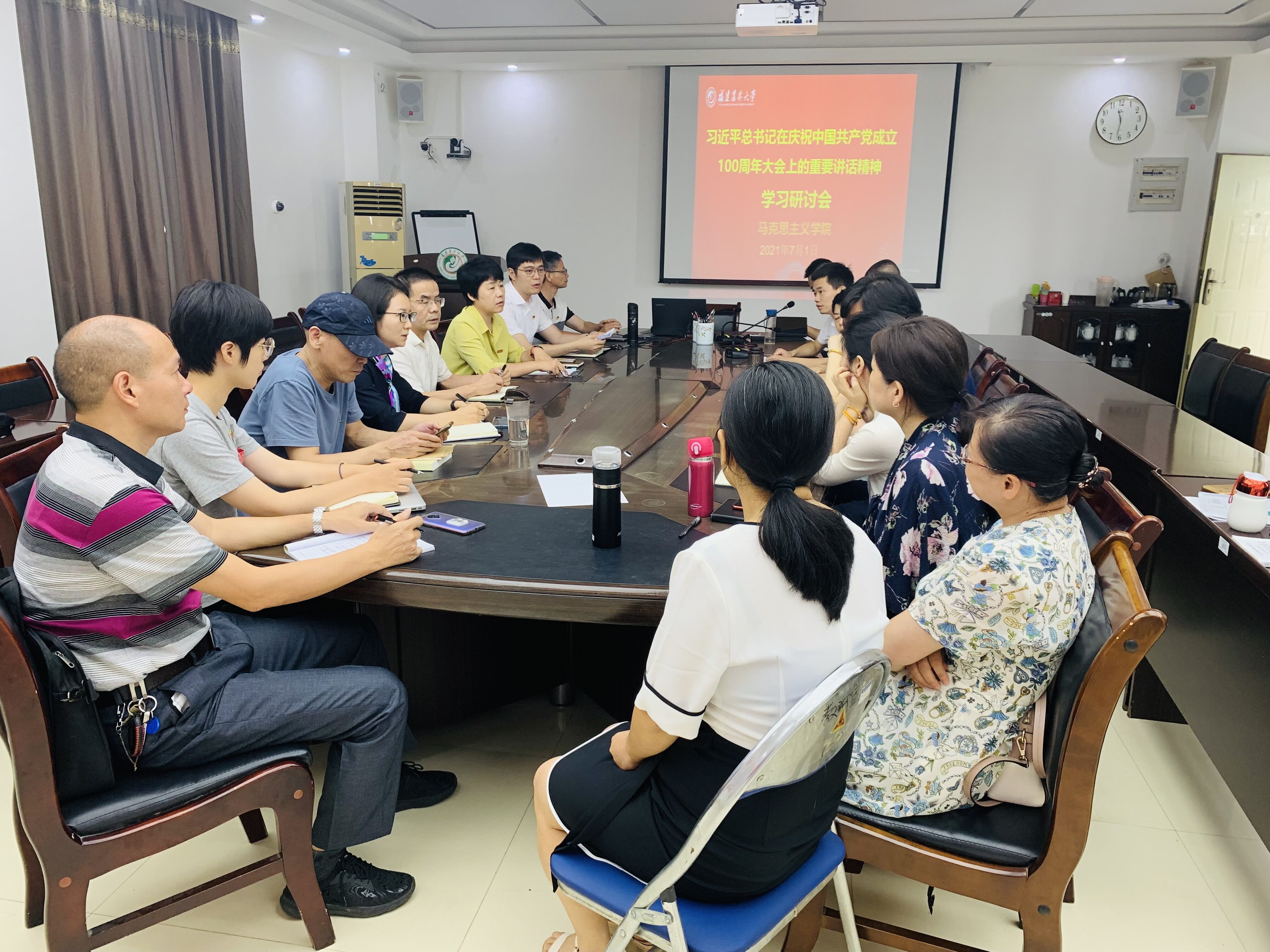 在会议之前,学院还组织各教研部开展了学习贯彻习近平总书记在庆祝中国共产党成立100周年大会上的重要讲话精神专题研讨会。学习研讨中,各教研部主任就如何将习近平总书记“七一”重要讲话精神融入思政课教学进行了深入研讨。