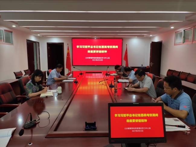 8月23日上午,公共管理学院党委理论学习中心组专题学习习近平总书记在西藏考察期间的重要讲话精神,研究部署贯彻落实意见。学院理论中心组成员参加学习,院党委书记曾起郁主持会议。