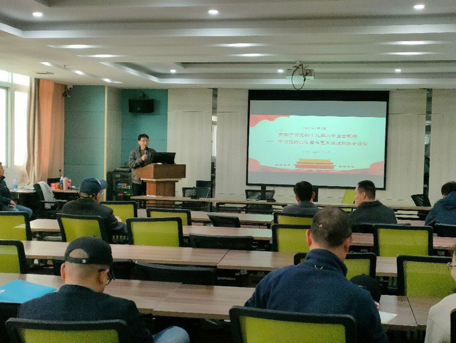 近日,资源与环境学院党委书记童庆满在田C611会议室给全体教职工宣讲十九届六中全会精神。
