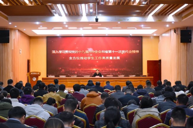 1月10日,校党委常委、校党委副书记曾华平为学工系统师生作题为《深入学习贯彻党的十九届六中全会和省第十一次党代会精神,全方位推动学生工作高质量发展》的宣讲报告。曾华平指出,党的十九届六中全会是一次内涵深刻、意义深远的重要会议,要深刻理解和准确把握全会决议的重要意义,深刻理解和准确把握党的百年奋斗的初心使命,深刻理解和准确把握党的百年奋斗的重大成就,深刻理解和准确把握“两个确立”的政治成果,深刻理解和准确把握以史为鉴、开创未来的根本要求。曾华平强调,当前和今后一段时间,学工系统要坚持对标对表,按照校党委提出的“八个务必”要求,以学习宣传贯彻党的十九届六中全会和省第十一次党代会精神为主线,着力加强大学生理想信念教育,着力发挥学生党建在思想政治教育中的引领作用,着力突出各项管理服务工作的思政内涵和育人属性,凝心聚力、乘势而上、开拓前行,扎实服务我校“双一流”建设,培育担当民族复兴大任的时代新人。