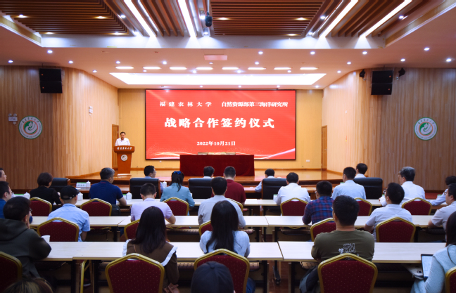 自然资源部第三海洋研究所办公室、人事处、科技处及我校党政办、研究生院、科技处、发展规划处、社会服务处负责人,海洋学院领导班子成员及师生代表共计60余人参加签约仪式。