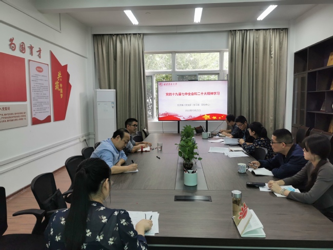 10月25日下午,机关第八党支部召开专题学习会,认真传达学习校党委常委会扩大会议精神,学习贯彻党的二十大精神。肖红新主持会议,机关八支部支委及学工部、双创中心各科室中心负责人参加了会议。