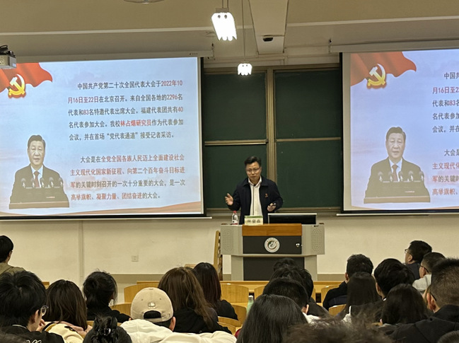 林豪森以《中国式现代化与当代青年大学生的责任担当》为题,以深刻领会和准确把握中国式现代化的丰富内涵为主线,以正确认识当代青年大学生的使命任务为主责,以奋发有为状态投身中国式现代化的时代洪流为鼓舞,勉励当代青年大学生在新时代新征程中用热血与信仰,用智慧与汗水,在奋斗与担当中谱写“大写的青春”, 立志做“胸有大志、心有大我、肩有大任、行有大德”的德智体美劳全面发展的社会主义建设者和接班人。