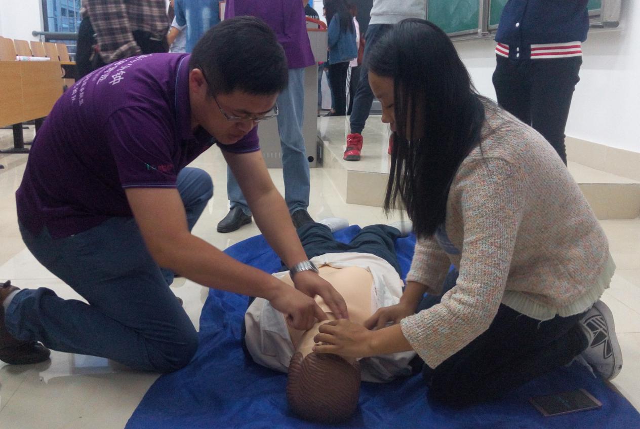 张伟在演讲中,向学生介绍了常见紧急状况的判断识别及应对措施,并用人体模具向学生示范了心肺复苏技术、海姆立克急救法和人工呼吸三种最常用的急救技能。演讲结束后,众多学生向医护人员请教了日常医疗问题,并用人体模具模拟了现场急救。2014级化学工程与工艺专业的尹铸是宿舍舍长,他说:“今天收获很大,以后如果身边有同学遇到突发状况,我能帮的上忙。”现场另一位同学,2015级交通工程的张森晖表示,自己经常流鼻血,今天问了医生才发现之前的止血措施并不正确,“我们一般认为流鼻血头要向后仰,不让血流出来,其实是不正确的,医生教了我几种正确的方法,比如捏住两侧鼻翼5分钟左右。”