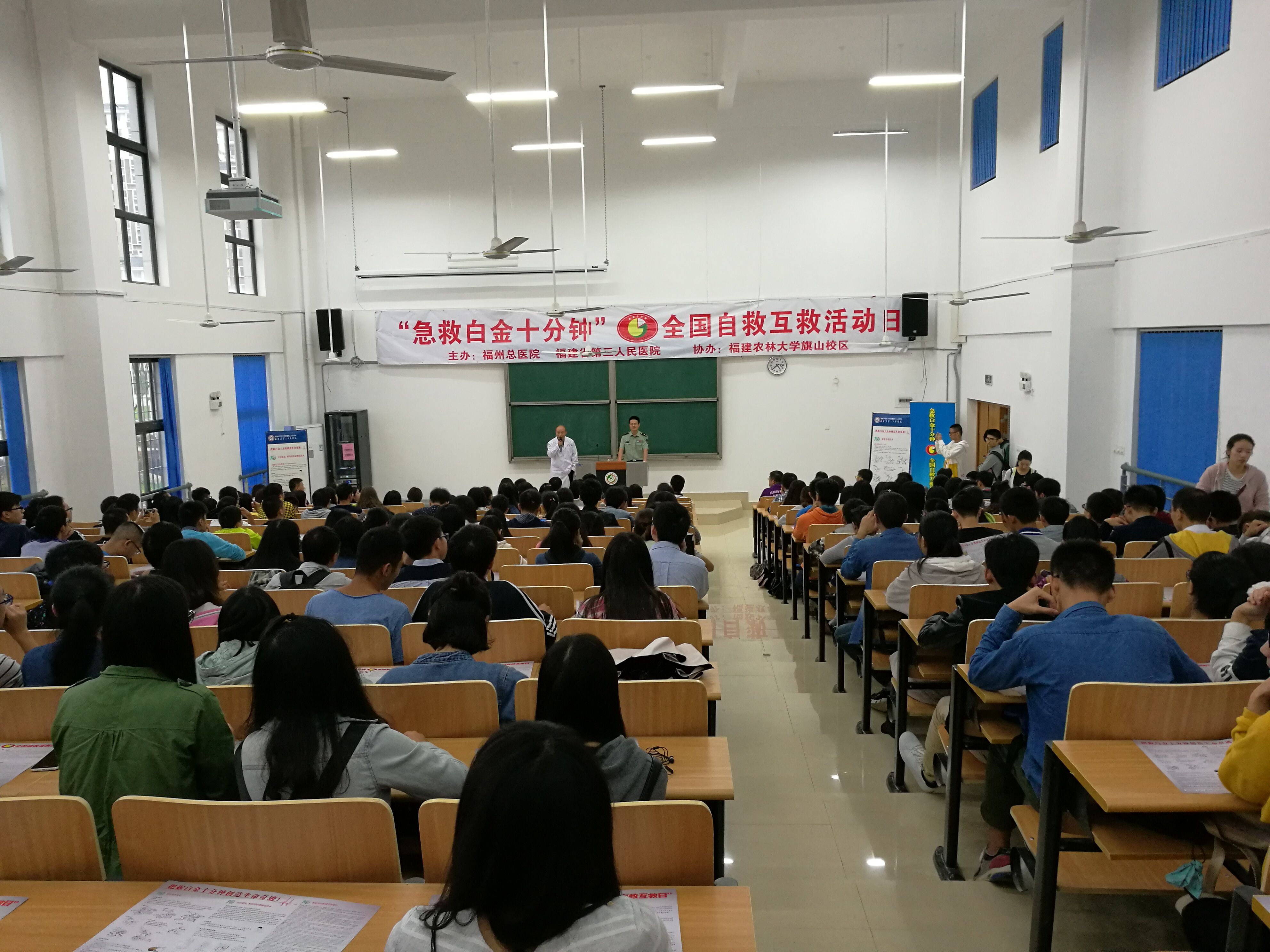 10月10日,第七届“急救白金十分钟,全国自救互救日”活动走进开云网页版旗山校区,福州总医院和福建省第三人民医院的十余名医护人员现场示范,向学生普及急救知识。