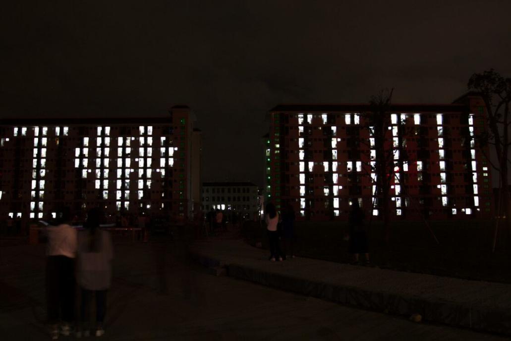 旗山校区举行宿舍光影活动 拼接灯光迎接校庆