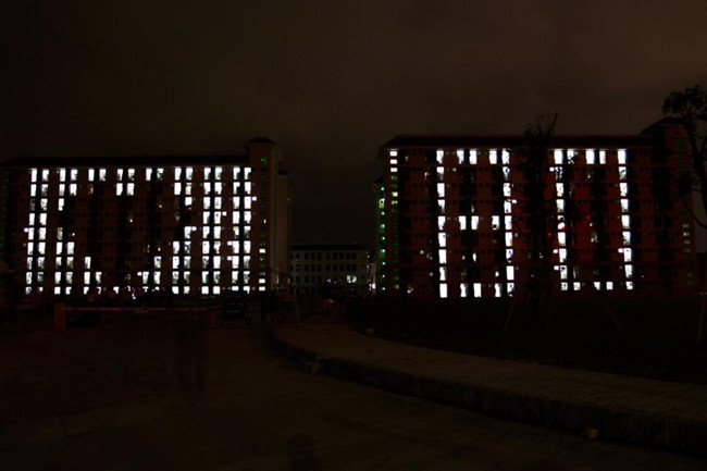 旗山校区举行宿舍光影活动拼接灯光迎接校庆