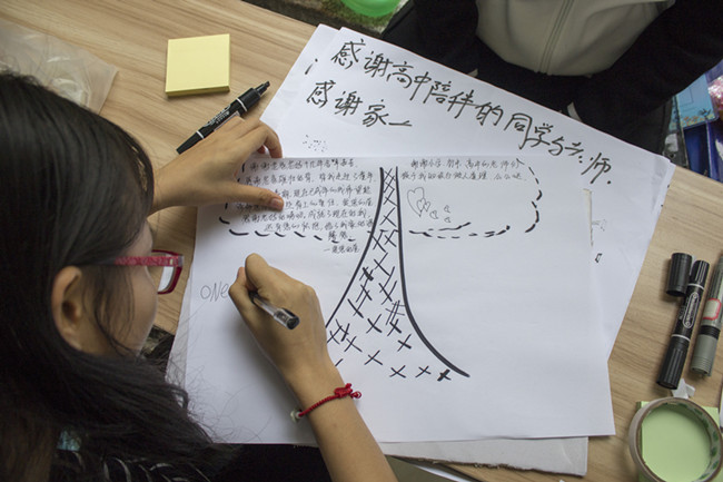 “感谢老师一直以来对我们的教诲与栽培,感谢陪伴我学习生活的同学们。”下课经过的同学们自发在活动现场的感恩墙上写下了祝福语。
