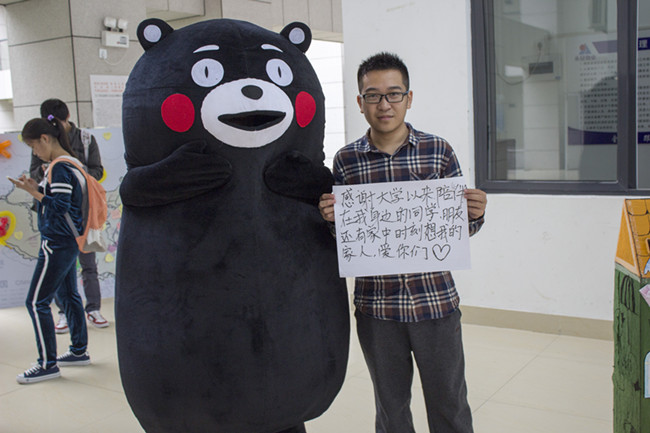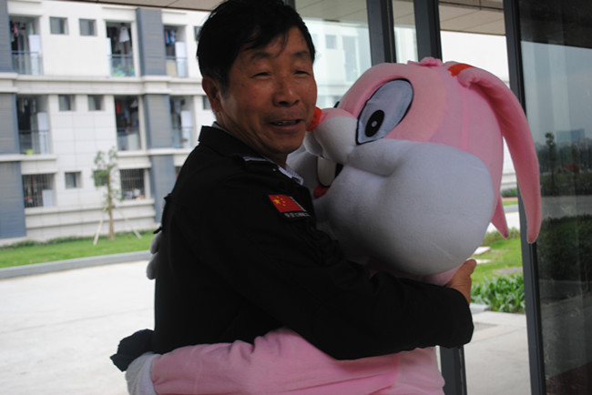 “同学们这么用心的安排,让我十分感动和欣慰,当听到同学们说一句‘叔叔辛苦啦’,感受到他们的拥抱,突然间觉得我整个人都被幸福包围着的,我觉得我的付出都是值得的。谢谢同学们!”旗山校区宿舍楼保安叔叔接受同学的拥抱后激动地说。