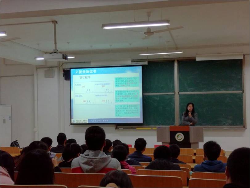 张阳阳分别从就业协议书、报到证、档案、党组织关系等方面对毕业生做了讲解,列举了往届毕业生在办理相关手续时碰到的典型问题,让同学们通过具体案例了解毕业相关材料的重要性。