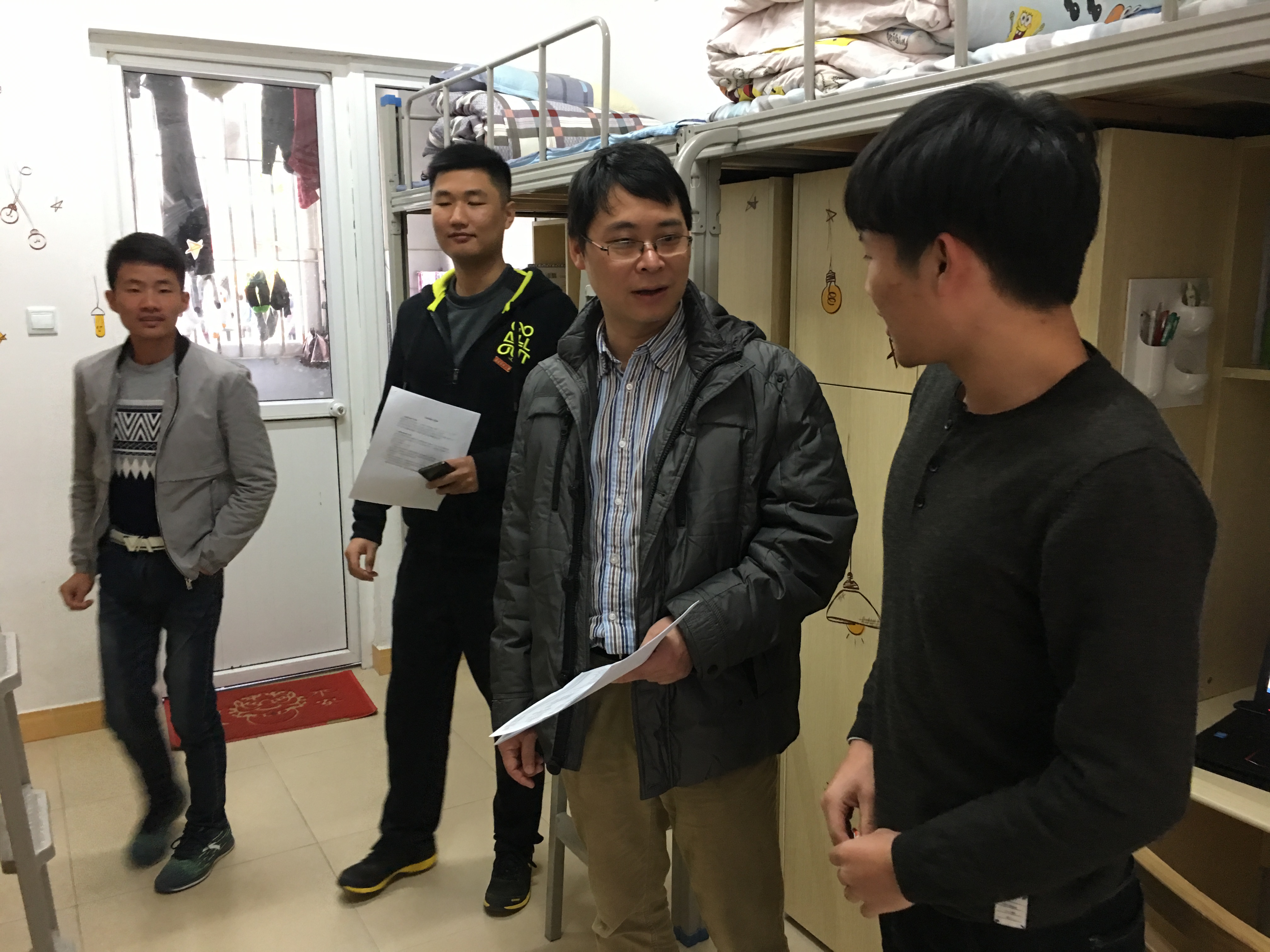 3月1日下午,材料工程学院党委副书记曹滨斌带领各年级辅导员深入学生宿舍走访,指导、检查宿舍文明常态化建设工作。