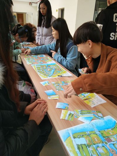 在此次活动中,全体团支部团员都积极参加,活动前期准备工作,各个班委分工合作,在旗山各地取景并确定旗山校区内部路线,将所采集资料交由宣传委员绘制旗山校区地图,其他班委则借用相机摄影,记录下旗山的绚丽风景。活动中期,将拍摄好的照片与视频进行剪辑处理,绘制好的手绘地图于电脑上进行后期处理并印制出来,最后将具有旗山特色的风景地标制做成明信片。活动后期,分批安排各团支部成员进行摆点,向其他师生宣传我们此次的主题团日活动。在活动中,有一些同学发挥文采倾写对旗山的祝福语,还一些同学通过比赛将手绘地图制作成的拼图拼完整,胜者则获得我们送出的旗山手绘地图一张,另一些同学则手写明信片,将自己的祝福和情谊传达给同学、老师和朋友们。在活动最后,经团支部成员统计共收到旗山校区寄往本部的明信片146张,并于27日由团支部成员将明信片亲手送到本部同学手里,而从本部寄回旗山的明信片也达到了102张,也在27日晚送到了旗山校区各个师生的手里,活动事先准备的100张旗山校区手绘地图也全部送出。