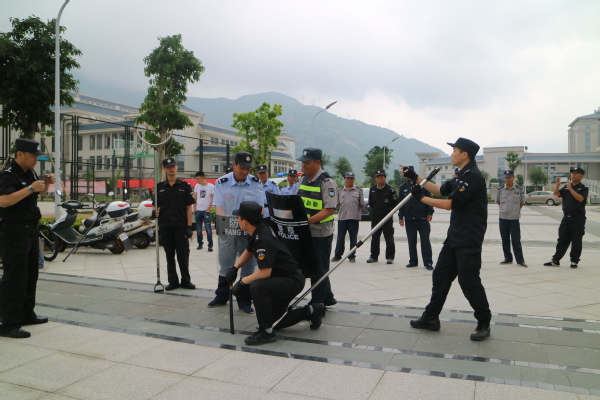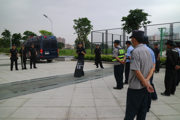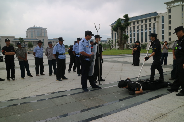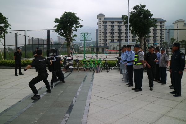 5月25日上午,旗山校区保卫办组织安保队员在校区东门广场开展防暴恐技能培训。