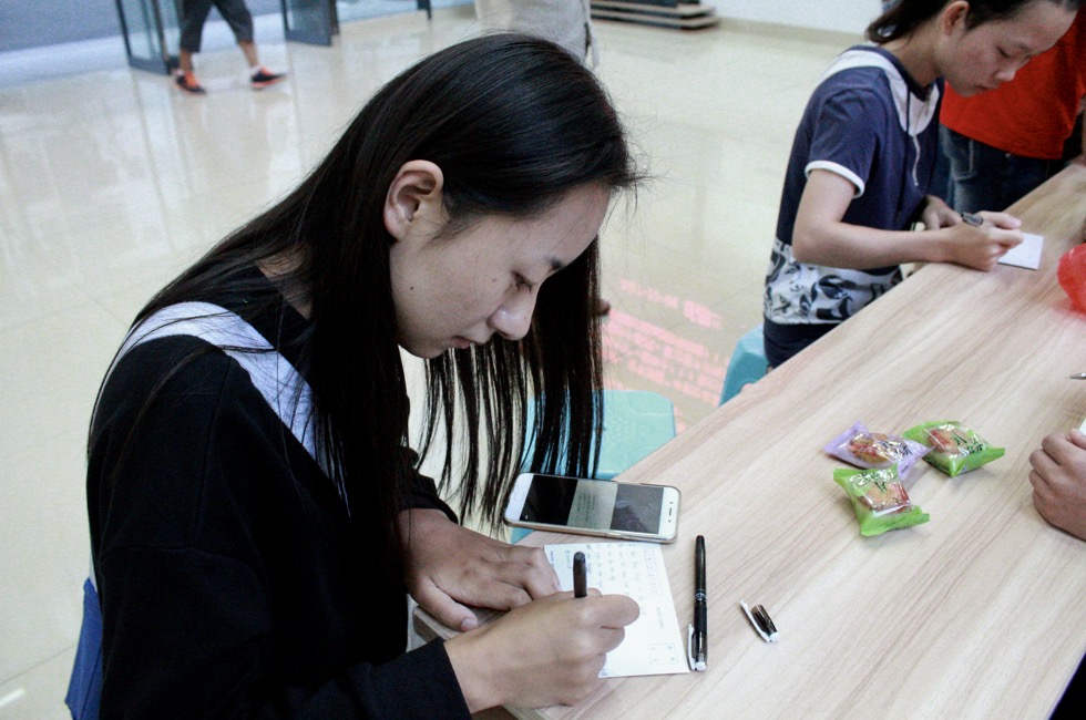 活动现场气氛热烈,同学们都踊跃参与。活动现场,学生会工作人员派发明信片给路过的同学们,让同学们写下中秋节想家人说的话。工作人员在当天明信片派发结束后帮助同学们寄出明信片。