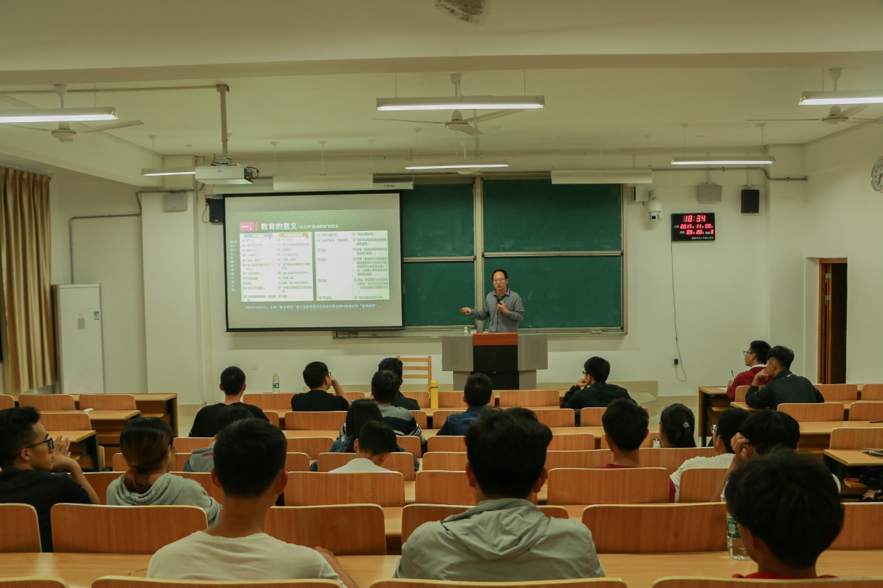 李伟明老师的授课主题是“习近平的知青岁月对大学生的启迪”。李老师提出,要将《习近平的七年知青岁月》一书与习近平新时代中国特色社会主义思想紧密结合进行学习。习总书记在他的七年知青岁月中,与当地群众紧密联系,学生干部也应如此,在工作学习中,能与学生干部、同学形成良好合作,在团队中有所作为。