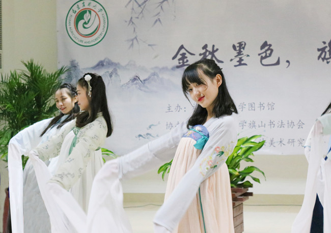 活动以汉服古典舞曲《采薇》开场,图书馆党委书记郑美玉和旗山书法协会指导老师冯辉荣致辞。活动中,冯辉荣老师现场为书画爱好者泼墨题字。本次活动还邀请到了福建省知名书法家康雁塔老师,为同学们现场讲解书法的优劣和含义。此次书画展精彩纷呈,既传播了中国传统书画文化,也给各位书画爱好者提供文化交流和学习的平台,让中华文化展现出永久魅力和时代风采。