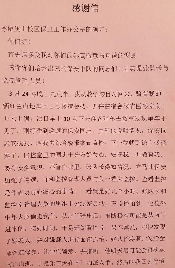 在此,保卫办再次提醒广大师生:提高防范意识,看管好个人财物,有序停放好各种车辆并上锁;发现可疑人员或线索,第一时间联系保卫办值班室(保卫办24小时值班电话:23508710)。我办也将深入开展平安文明校园建设,进一步健全校园治安防控体系,加强巡查布控力度,充分利用现代技防手段,严厉打击校园不法行为。
