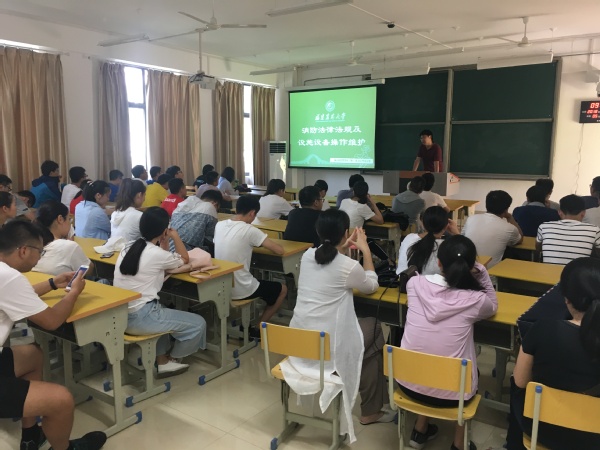 7月4日,旗山校区保卫工作办公室开展实验室消防培训。我办工作人员针对实验室复杂的工作环境向参与培训的师生讲解了消防法律法规、技术标准、消防设施的维护保养、初起火灾的扑灭、逃生疏散注意事项等相关知识并组织师生进行现场灭火演练。