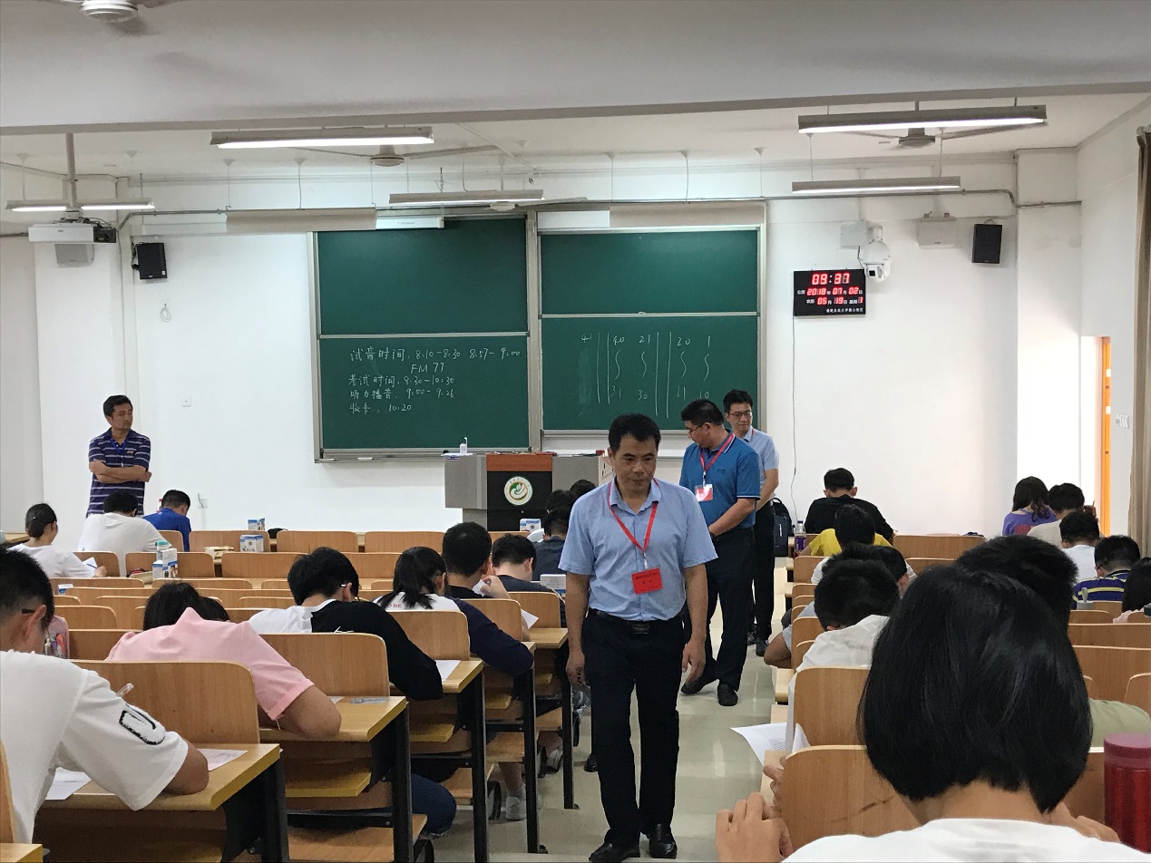 7月2日上午,旗山校区管委会(筹)常务副主任陈建辉、副主任范胜龙和校区教学管理人员组成期末考试巡视小组,深入教学楼相关考场,对旗山校区2017至2018学年第二学期期末考试进行了巡视。