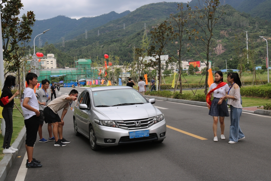 上午8点,学生干部便来到了各自的岗位,担任志愿者,配合保安进行车辆的引导停放工作。在志愿者认真热情地引导下,迎新现场交通秩序井然。