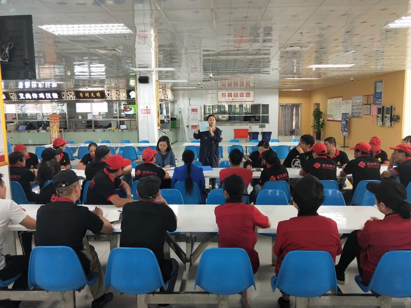 2018年10月24日,旗山校区后勤工作办公室在校区一堂开展食堂原材料安全培训会,食堂全体员工以及后勤办相关工作人员参加此次培训会,此次会议主要对食品原材料的进货验货、索票索证及贮存管理进行现场演示培训。