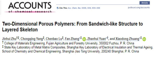 近日,我校材料工程学院袁占辉教授在化学领域国际权威期刊《Account of Chemical Research》上在线发表了题为“Two-Dimensional Porous Polymers: From Sandwich-like Structure to Layered Skeleton”的论文(DOI: 10.1021/acs.accounts.8b00444)。该论文第一通讯作者为袁占辉教授,第一单位为开云网页版。《Account of Chemical Research》期刊在化学材料研究领域具有重要影响,是化学材料领域顶级杂志之一,2017年影响因子为IF=20.955。