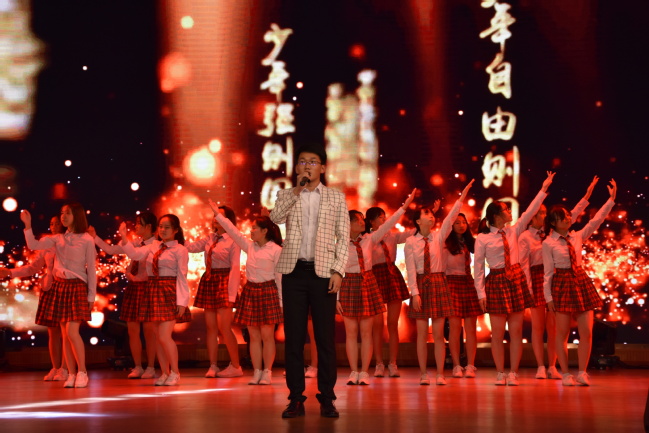 晚会在舞蹈《鼓瑟舞裳》所再现还原的敦煌壁画《十二仙女图》中拉开序幕,音舞诗画《我们的经典·玉人声声》表达了农林大学子对经典文化内涵的崭新理解。以武术、舞蹈、经典诵读等多种形式有机统一的节目《中国少年说》,演绎了“江山代有才人出”的盛世图景。小品《海魂》、歌舞《天下归心》、情景表演《共和国的脊梁》、朗诵《奋进吧我们的新时代》、啦啦操《时代正青春》陆续登台,充分展现了材料工程学院学子多才多艺、自信昂扬的风采,博得现场观众的阵阵掌声。学院老师刘学莘献唱的《把一切献给党》更是把晚会推向了高潮,动人的旋律在刘老师富有感染力的歌声中流露出对党和国家的真挚情感。灯影戏《家国光影》灵感来自于凉山救火英雄的英勇事迹,节目以“光影”与“家书”作为载体,展示了当代消防英雄穿越火光、不惧生死、一心为民的英雄气概。最后,师生合唱团表演的合唱《我和我的祖国》作为晚会压轴节目,豪情万丈而又饱含深情,现场观众无不为之振奋、动容,为晚会的圆满落幕增添了浓墨重彩的一笔。