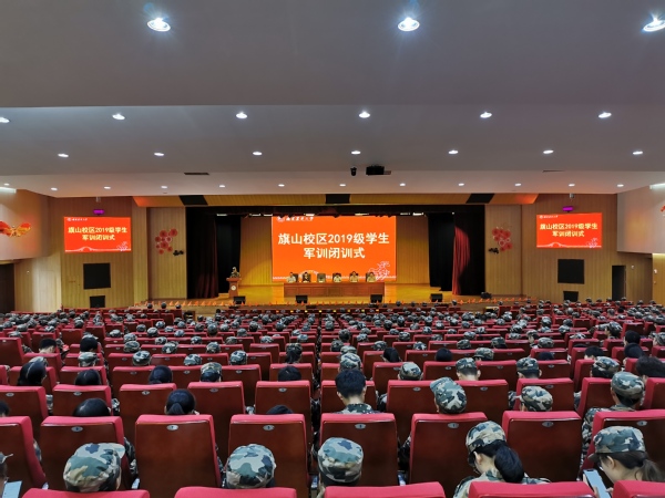 9月30日上午,旗山校区2019级学生军训闭训式在校区报告厅隆重举行。校区管委会领导、学院领导、承训部队官兵和参训学生七百余人参加了闭训式。