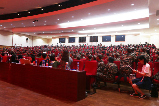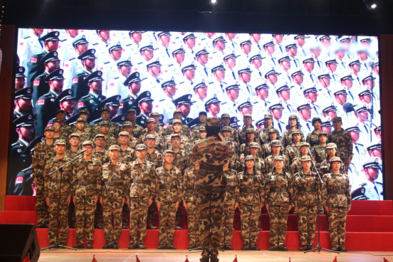 晚会最后的拉歌环节更是令现场气氛欢乐无比。军训教官分为两组,带领自己带训的新生,分别合唱了《歌唱祖国》和《强军战歌》。两首歌曲在全体新生的演奏下,铿锵有力,气势磅礴!现场传来一阵阵掌声。