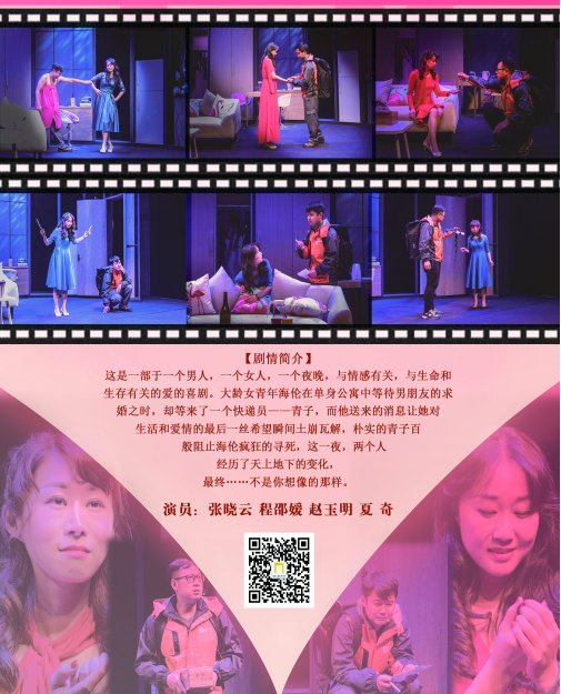 《花事如期》主要讲述了这样的一个故事:讲述了海伦在家等待男友李山上门求婚。快递员青子却送来了男友的分手信。海伦无法接受这个现实,欲求轻生。青子洞察其意,死缠烂打地留下相陪。两个陌生男女在一屋之内共同度过了灵魂出窍的一夜,海伦从绝望中获取了新生。该剧将人生中爱情之门、生活之门、希望之门、亲人之门层层打开,发人深思。演出思想深刻,形式新颖,观影的师生无不被演员精湛的演技折服,掌声经久不息。