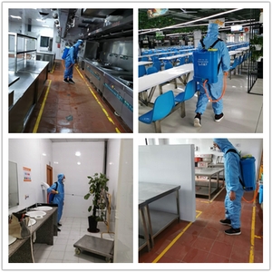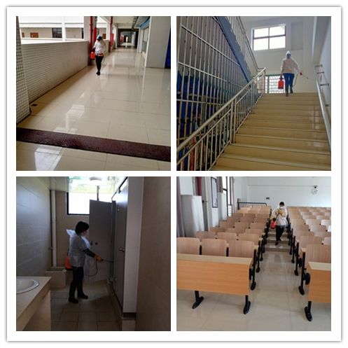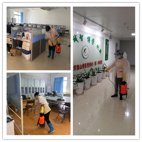4月25日-5月7日,校区组织物业服务公司在前期校区范围内全面消杀的基础上,对校区教学楼、食堂、学生公寓、行政办公楼、实验楼等楼宇及校园内其他公共区域进行全面保洁及消杀。