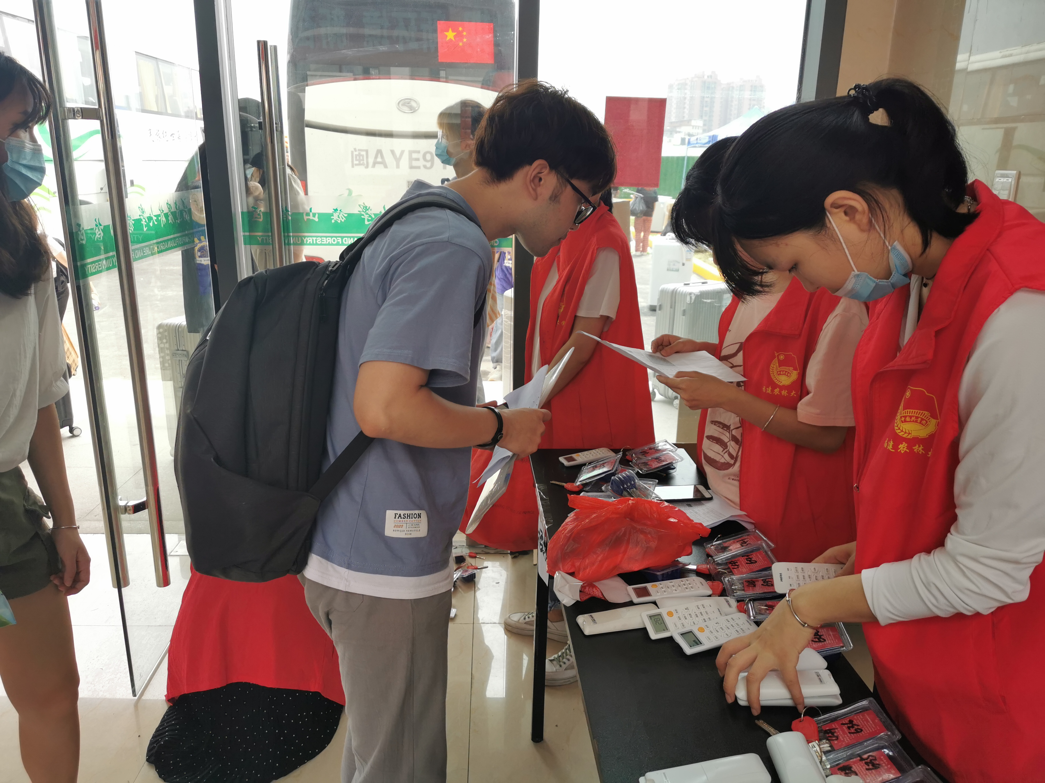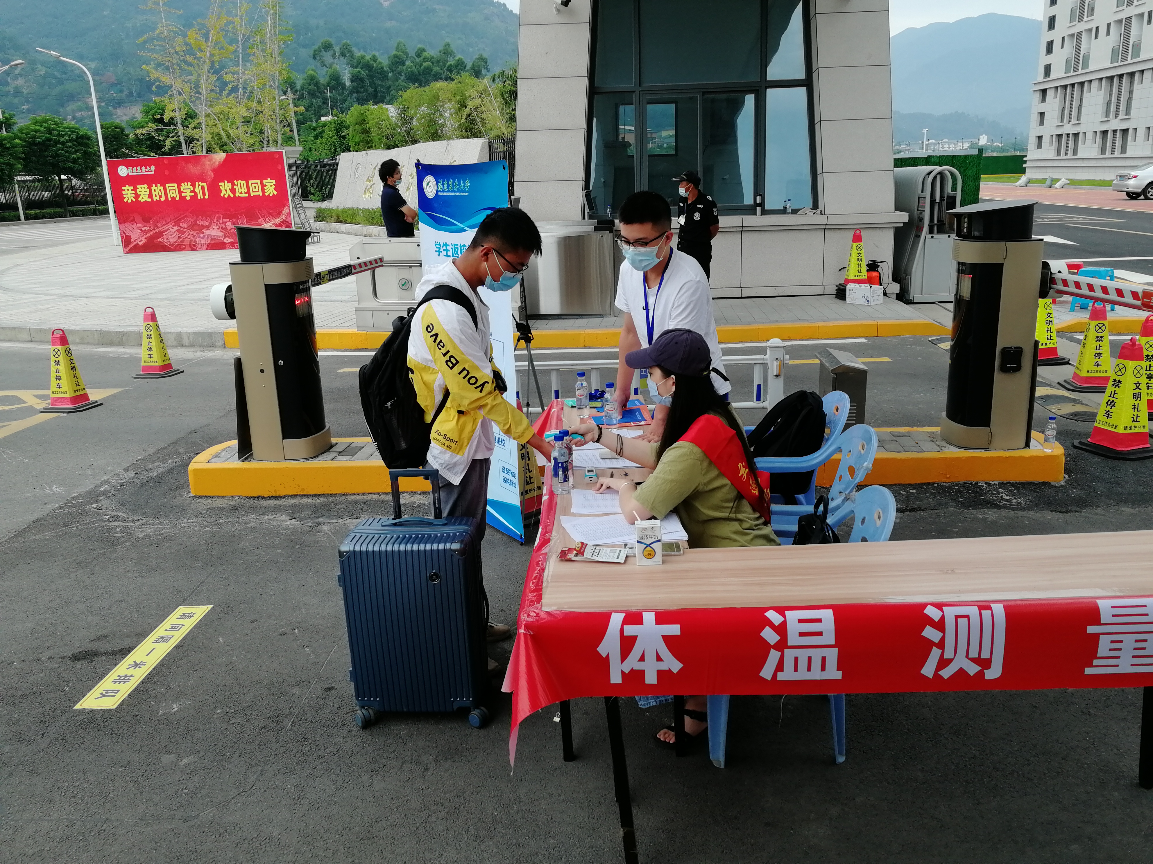 为了全体师生的安全着想,旗山校区就返校复学的各个环节做了周密的考虑。返校学生从踏进校门的那一刻起,就能感受到校区满满的关心与爱。返校的同学们拿着沉重的行李,一到达校门口就有亲切的青年志愿者们上前帮忙。“同学你好,欢迎返校,请在这测量体温。”志愿者们一句句温馨的问候为返校的同学们拂去归途的疲惫。所有的同学经过“一测二检三扫”的环节后才能进入校园:首先,对返校的同学进行体温的测量,核查健康码;其次,对随身携带的行李进行全方位无死角的消毒杀菌;随后,同学拿出自己的相关证件与今日校园的返校健康码进行扫描与核对。进入学生公寓,返校学子每人还领到了一支温度计,便于随时测量自己体温。旗山校区提前部署,周到服务,引导学子有序返校。时隔八个月之久同学们又齐聚旗山;新学期,新气象,旗山永远是学子们最温暖的港湾,最不舍得割舍的一片心海。