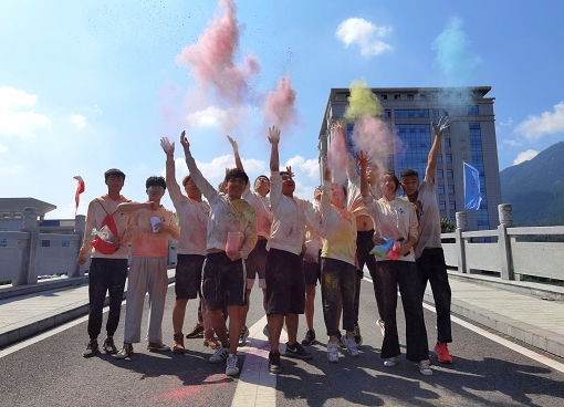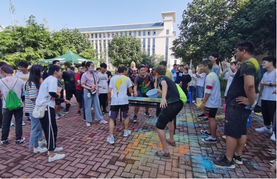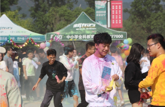 活动开始前,不少同学通过互相泼撒彩粉的方式进行简单的热身互动,五彩的粉末在同学们的嬉闹声中飘散。2020级风景园林专业的彭兆翔指了指自己“五颜六色”的脸颊,笑着说:“这拉近了同学们之间的距离。”