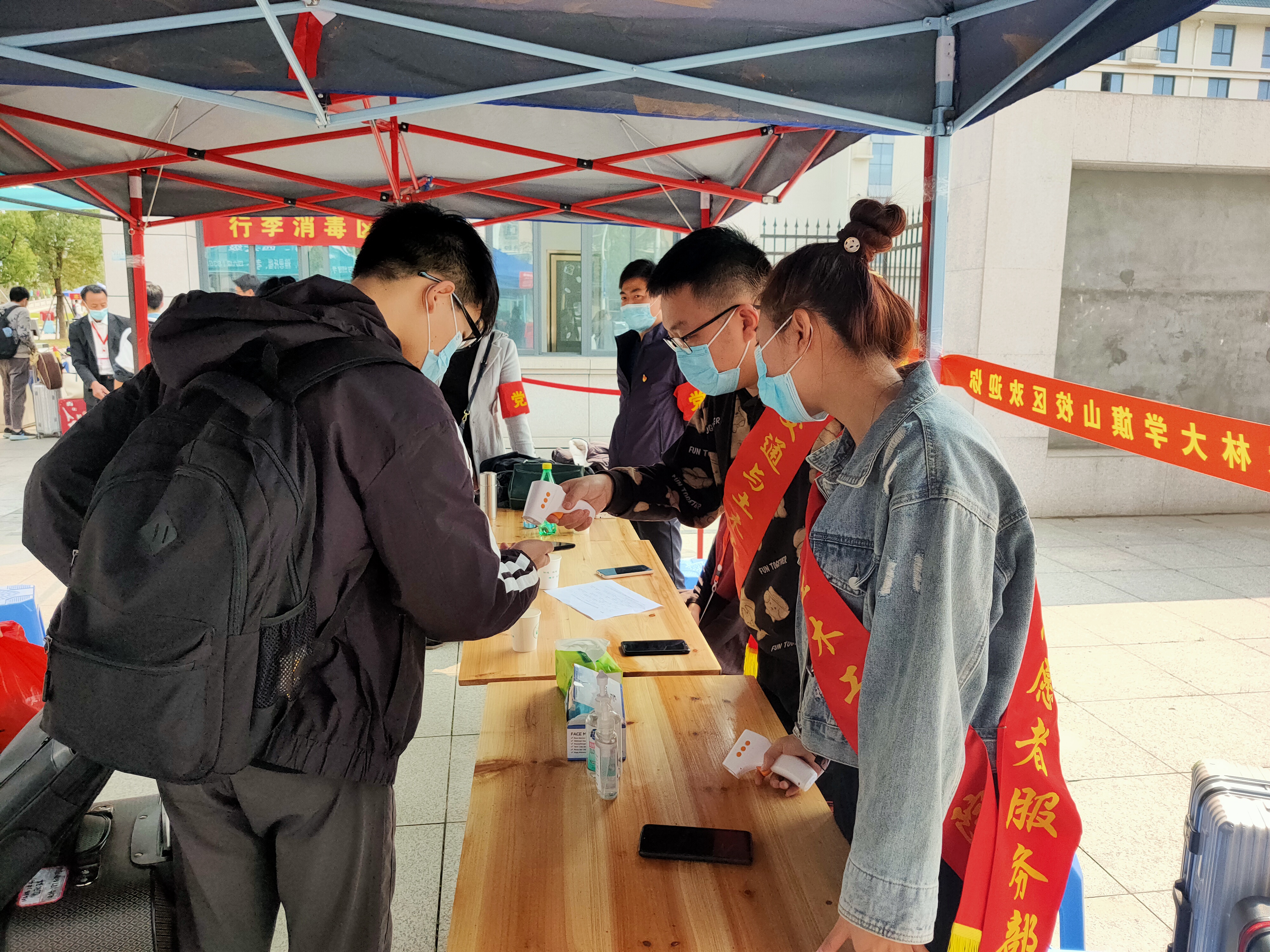 站好党员示范岗,师生党员志愿者主动搬运行李