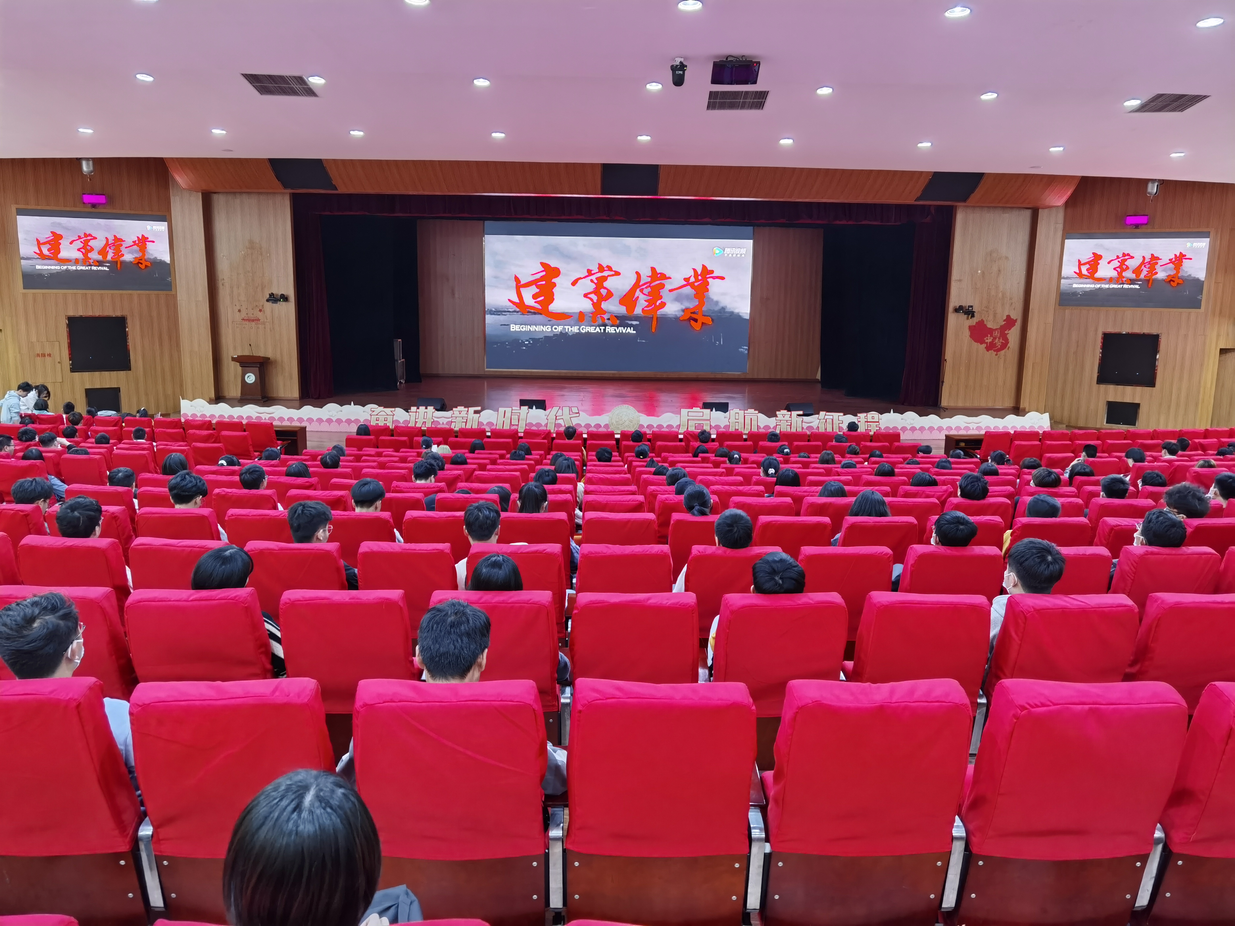 4月19日晚,旗山校区在大报告厅开展本学期首场“电影周”活动,旗山校区管委会(筹)党支部、各学院党支部近330名师生代表一同观看了党史学习教育电影《建党伟业》。