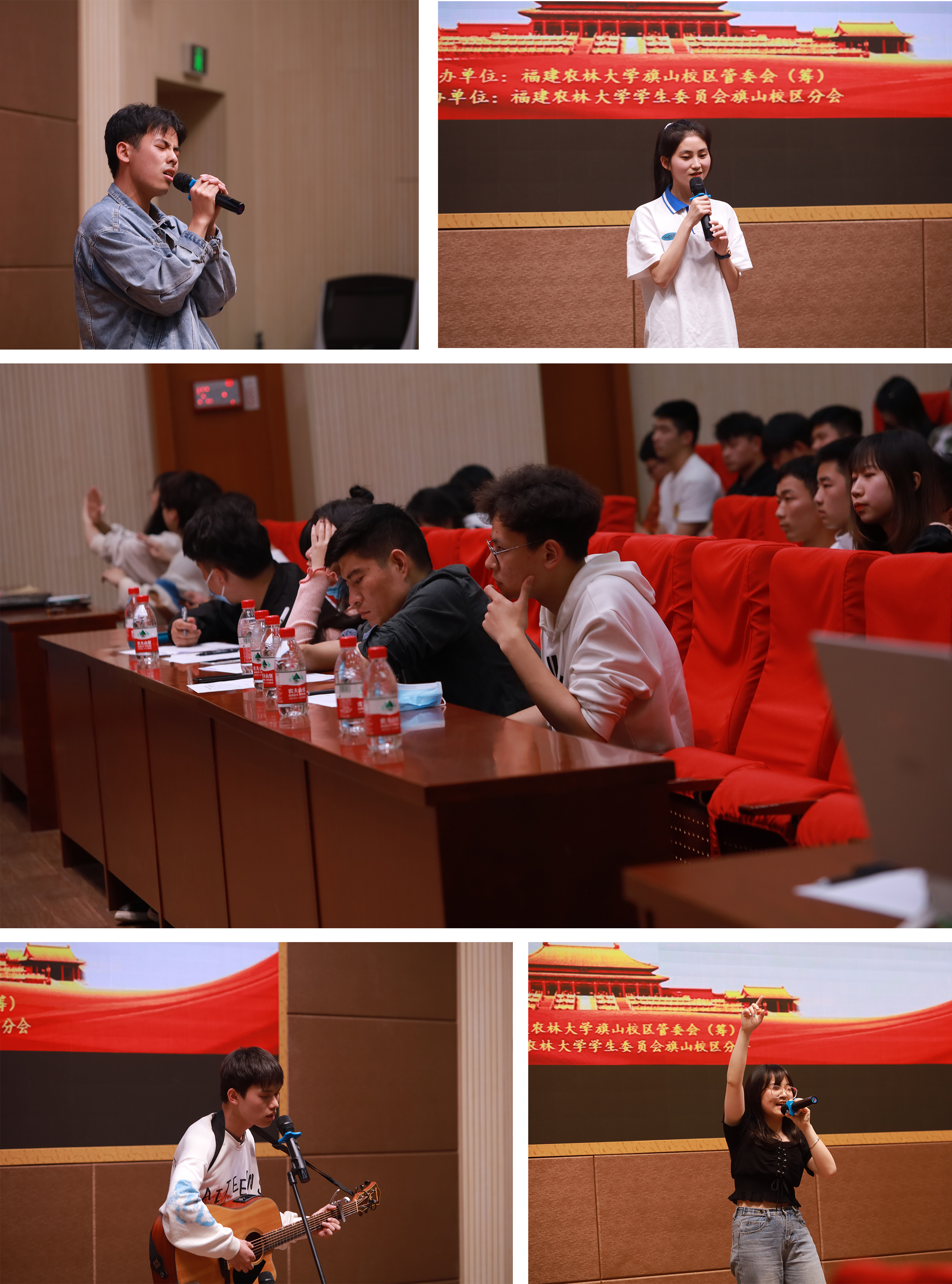 比赛现场,选手们拿出最好的状态,以不同方式向评委和观众展示了自己讴歌新时代的热情。歌曲《国家》用青春之声演绎了青年学子对祖国的热爱,表达了青年大学生将以实践肩负起祖国给予的使命,努力践行“明德 诚志 博学 创新”校训,砥砺前行的奋发姿态;《越来越好》唱出了奋进在社会主义新时代的农林大学子内心的喜悦和对美好未来的期许;《祝福祖国》大气豪迈,唱出了青年学子祝祖国繁荣富强,欣欣向荣的情感;《好男儿就是要当兵》抒发了歌手对战士军纪严明、吃苦耐劳、保家卫国的赞美之情;《两岸一家亲》传递出两岸亲如一家的亲情以及共同发展的美好希冀……歌手们把对党和祖国的祝福融入到歌声中,为现场师生献上了一曲又一曲精彩的表演。