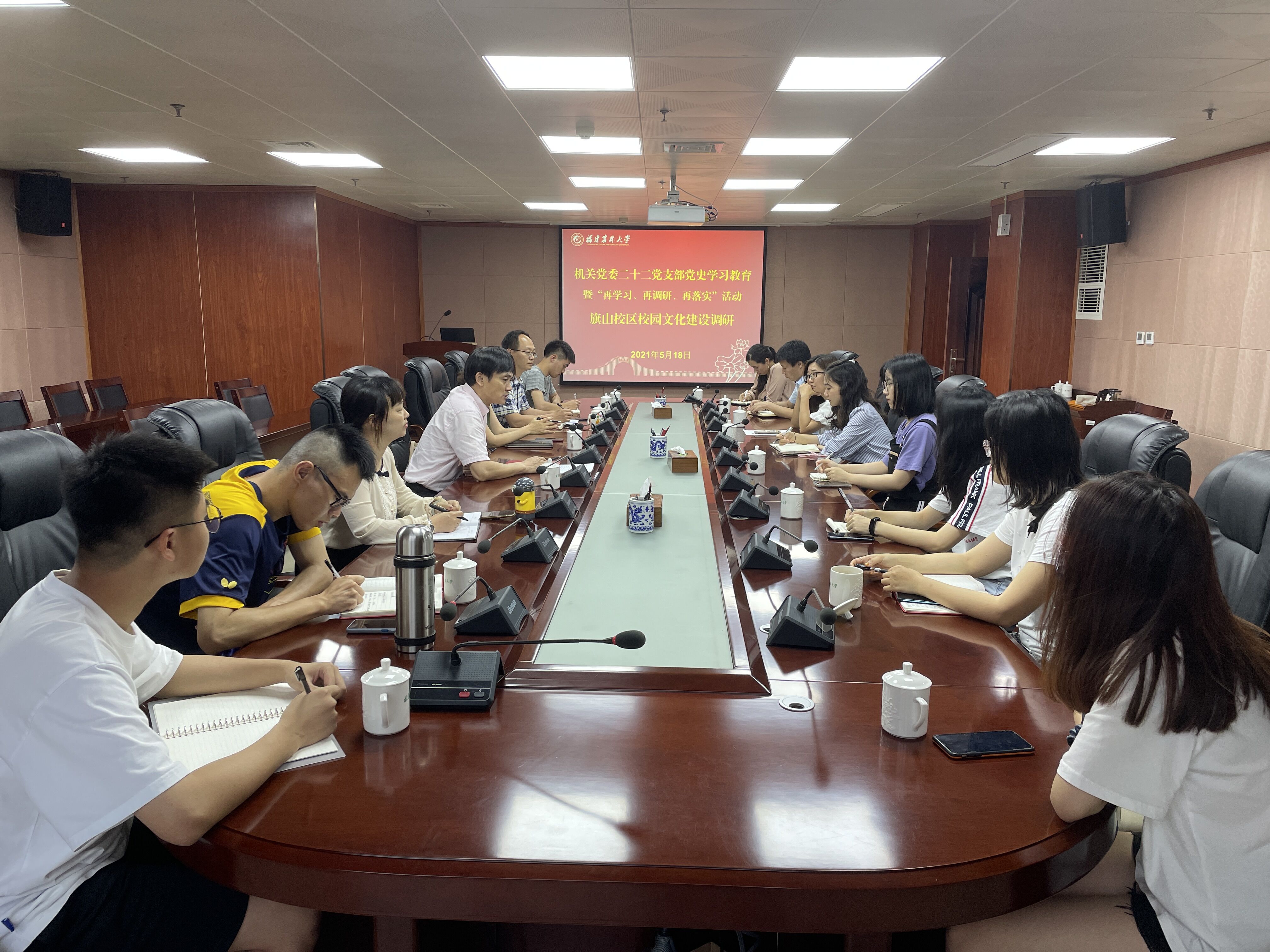据悉,此次调研是旗山校区管委会(筹)党支部党史学习教育暨“再学习、再调研、再落实”活动的一部分,旨在通过调研,了解校区师生的需求,解决师生关心期盼问题,为提升校区师生校园文化生活品质创造条件。