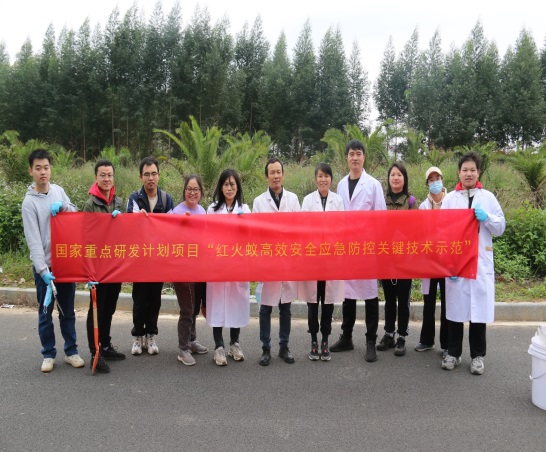 植保学院科研团队到旗山校区开展红火蚁防治工作