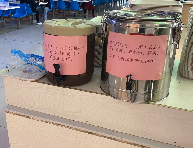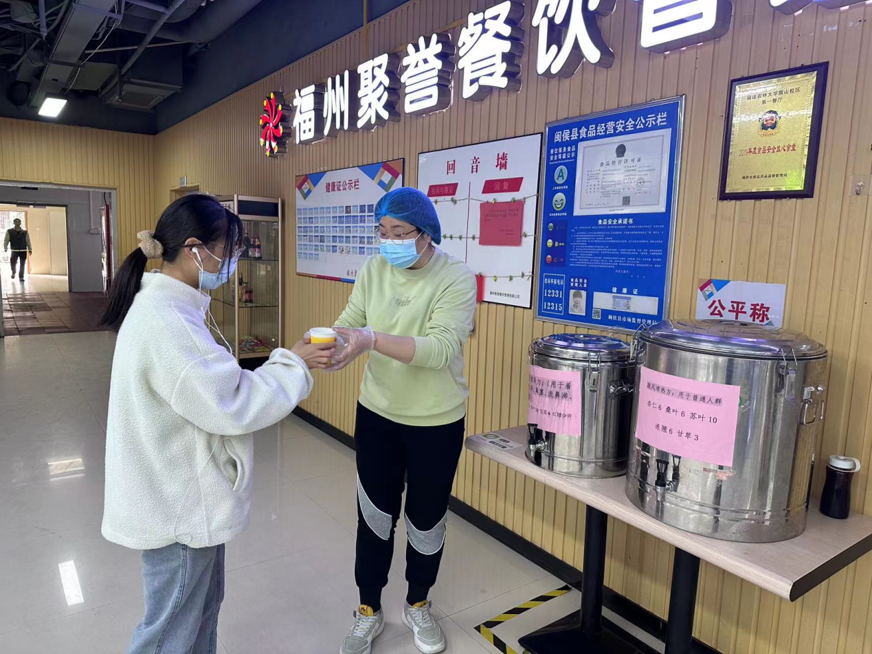 为守护旗山校区师生员工健康安全,预防春季高发的流感病毒(如甲流),校园管理办公室与福建中医药大学联系,购买了一批疏风清热中药材(针对普通人群)、疏风散寒中药材(针对着凉人群),第一时间交由校区三个食堂熬制成中药饮,从21号开始在食堂就餐大厅醒目位置,免费提供给校区师生员工饮用。