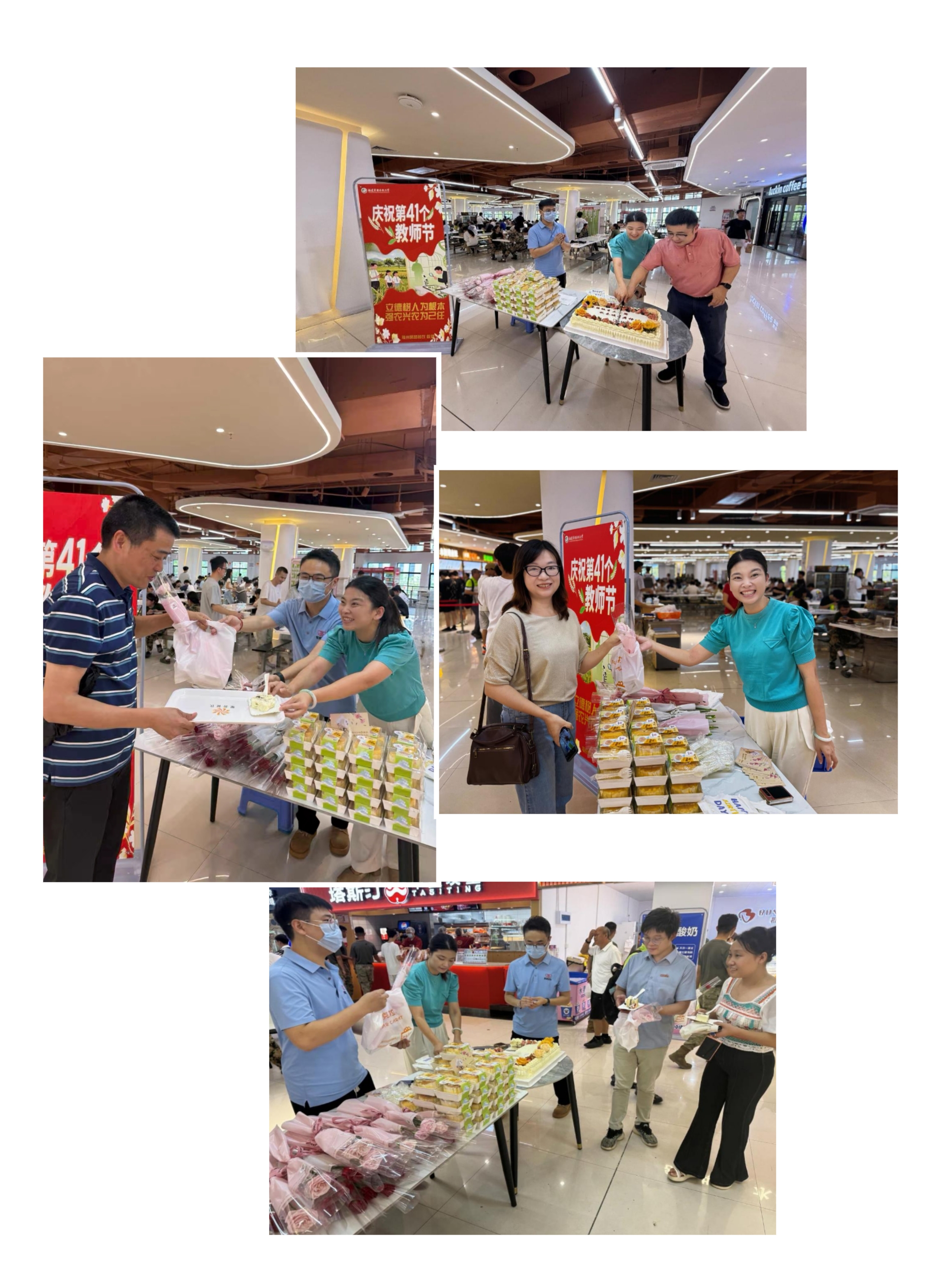 福州聚誉餐饮管理有限公司、第二食堂工作人员将香甜可美的节日蛋糕与典雅温馨的鲜花,逐一递到教师手中,并送上诚挚的节日祝福。教师们在一片暖意融融的氛围中,感受来自食堂的贴心关怀,脸上洋溢着感动与笑容。大家亲切交流、合影留念,现场气氛热烈而温馨。本次活动不仅丰富了教师节的仪式感,更在细微处体现了我校尊师重教的优良传统,为这个属于教师的节日增添了一抹温暖而难忘的色彩。进一步营造我校尊师重教、润心育人的良好氛围。