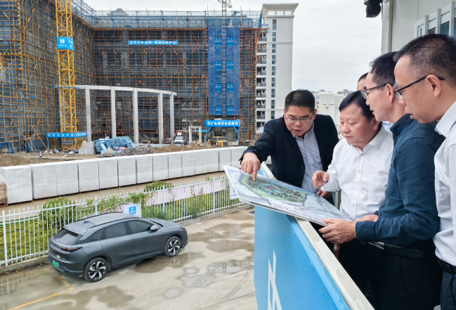 在电动车集中充电场,校领导检查了充电桩管理情况,要求要持续加强电动车集中充电、停放场所管理,提升电动车充电安全和管理水平,并就做好学生公寓周边绿化美化建设作出指示。